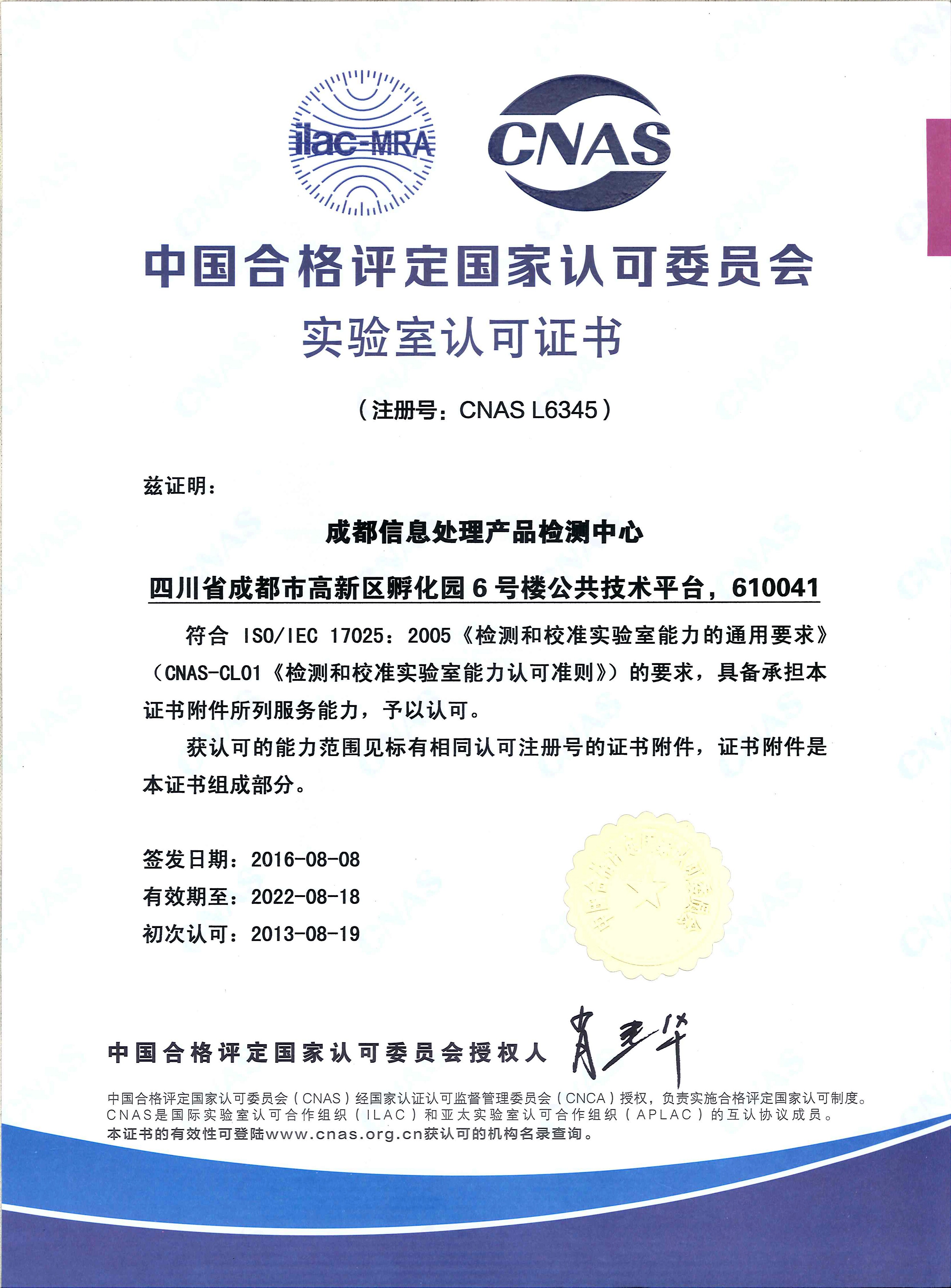 中心取得實(shí)驗(yàn)室認(rèn)可認(rèn)證資質(zhì)。CNAS證書編號(hào):CNAS L6345。。